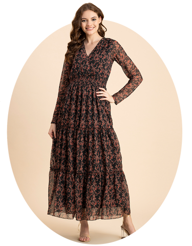 Includes: This clothing consists of 1 Dress (Any accessories worn by the model are not for sale) Material: Poly Georgette | GSM: 76 Dress Length: 41 inches (Approx.) Model Stats:...