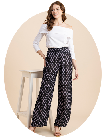 Includes: This clothing consists of 1 Top and 1 Palazzo (Any accessories worn by the model are not for sale) Material: Viscose Rayon | GSM: 119 Top Length: 14.5 Inches...
