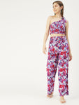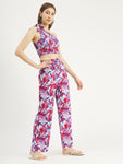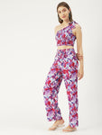 Features: one side tie-up shoulder, crop top, ankle length palazzo, elastic waist, lightweight and all over printed pattern