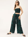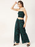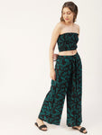 Features: sleeveless, smocked pattern, crop top, ankle length palazzo, tie-up waist, lightweight and all over printed pattern