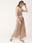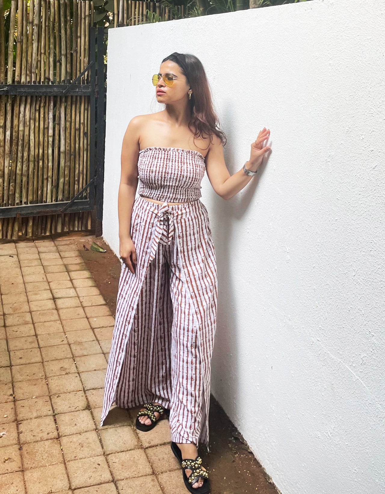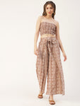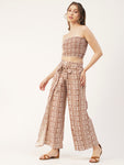 Features: sleeveless, smocked pattern, crop top, ankle length palazzo, tie-up waist, lightweight and all over printed pattern