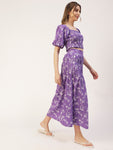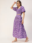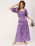 Features: square neck, elbow sleeves, crop top, ankle length, elastic waist, flared hem skirt, lightweight.