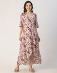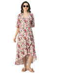Tags: Long Dress For Women, Ruffle Hem Asymmetrical Dress, Printed Maxi Dresses, V-Neck Dress, Printed Dresses For Women,