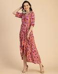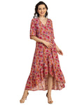 Tags: Long Dress For Women, Ruffle Hem Asymmetrical Dress, Printed Maxi Dresses, V-Neck Dress, Printed Dresses For Women,