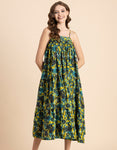 Features: Tie Dye Prints, Sleeveless, Square Neck, Long Length, Tiered Style, Flared Hem, Spaghetti Strap, Light Weight.
