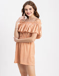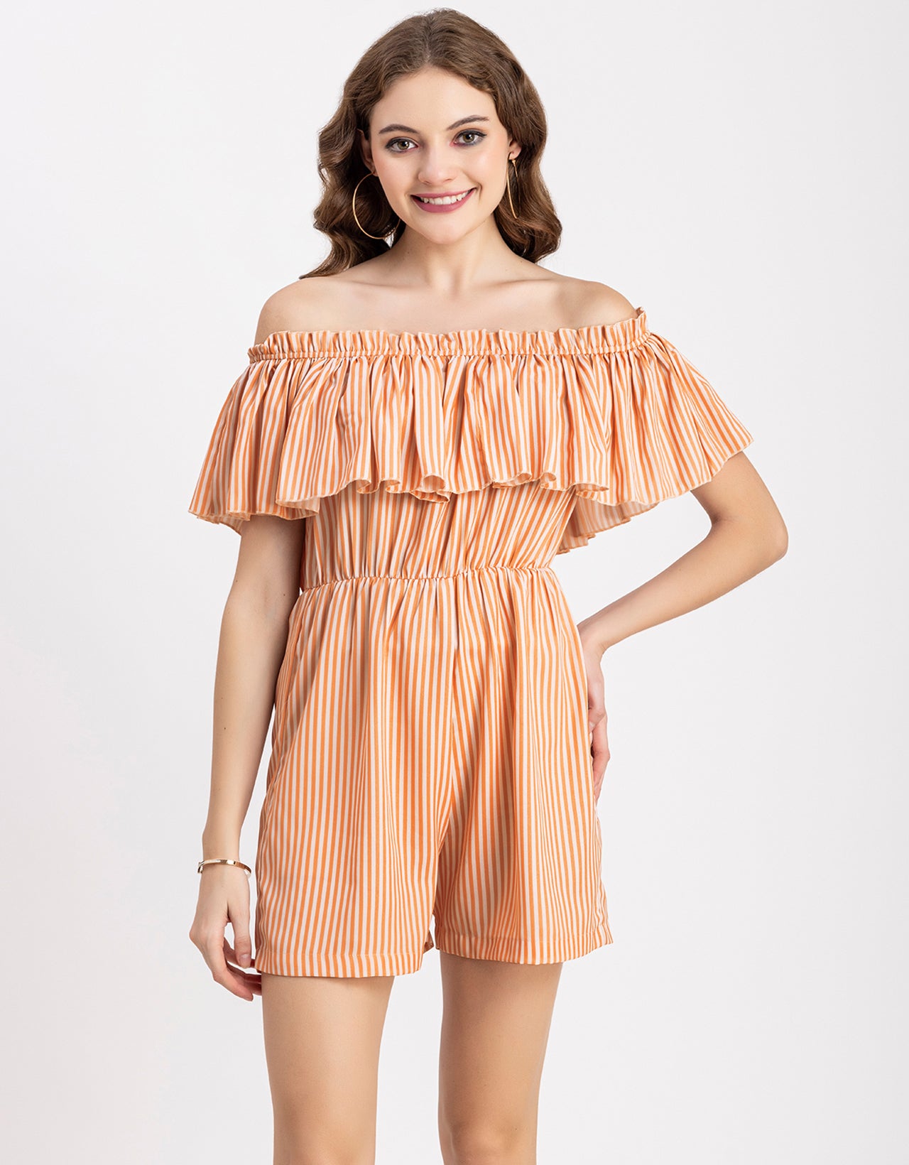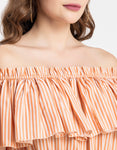 Features: Sleeveless, Off Shoulder, Regular Fit, Ruffle Style, Lightweight And Stripe Print Pattern.