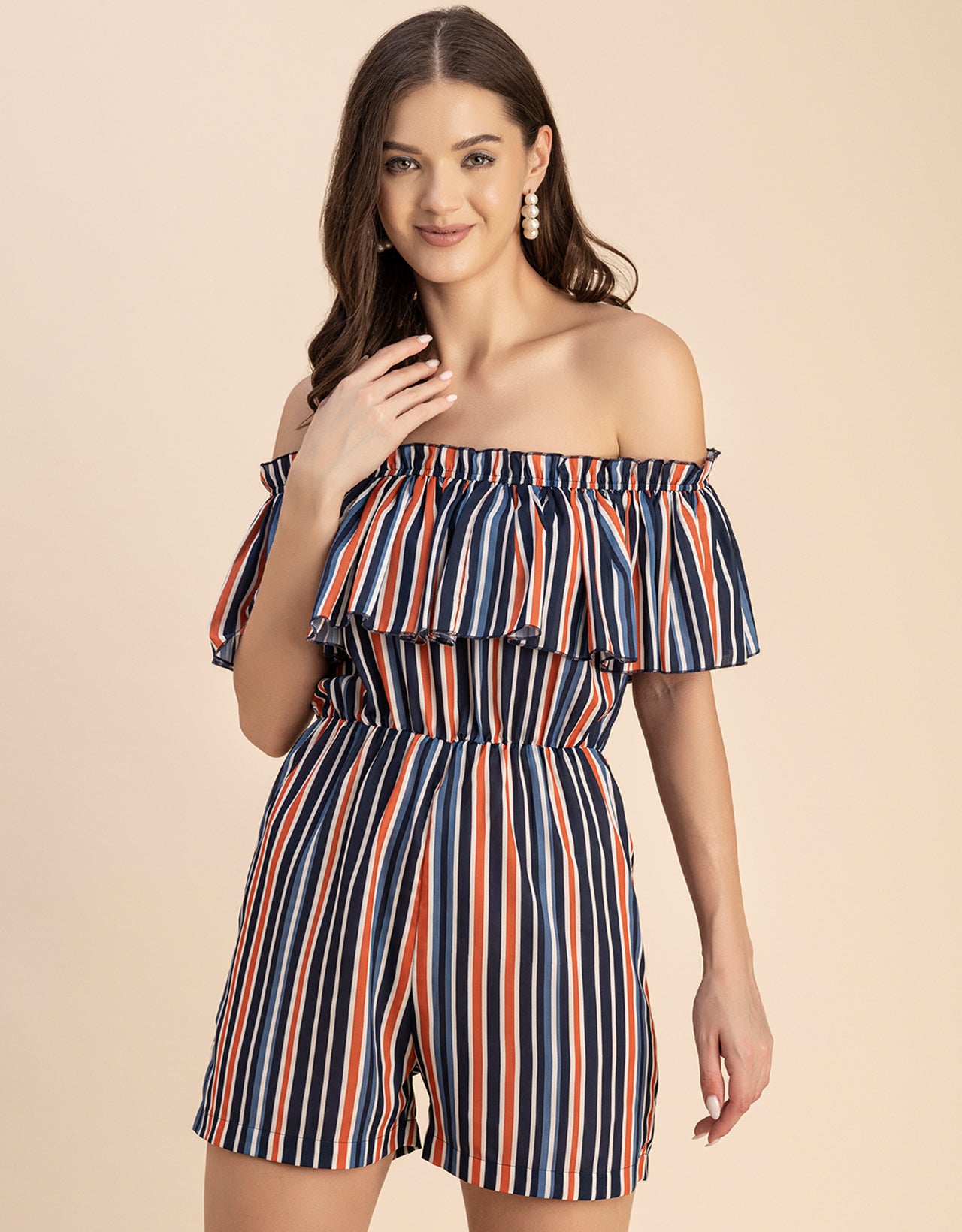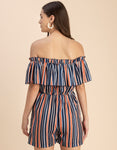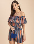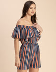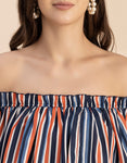 Features: Sleeveless, Off Shoulder, Regular Fit, Ruffle Style, Lightweight And Stripe Print Pattern.