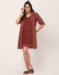 Features: Spaghetti Strap Dress, Short Length, V-Neck, Front Open Shrug, Comfortable, Breathable, Regular Fit, Solid Cami Dress And Printed Shrug.