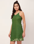 Features: Spaghetti Strap Dress, Short Length, V-Neck, Front Open Shrug, Comfortable, Breathable, Regular Fit, Solid Cami Dress And Printed Shrug.