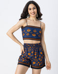 Features: Spaghetti Strap Crop Top With Smocked Back, Elastic Waist Shorts That Includes 2 Pockets, Matched With Shrug Coverup, Lightweight, Regular Fit, All Over Printed Pattern.