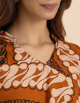 FEATURES: Short Sleeves Asymmetric Top, Semi Elasticated PANT That Include Pockets, Lightweight, Regular Fit, And All Over Printed Pattern
