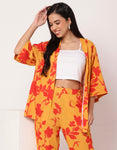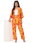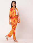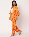 Features: Long sleeves shrug top, pant with concealed zipper and back elsatic, lightweight, regular fit, and all over printed pattern, perfect resort wear