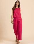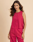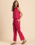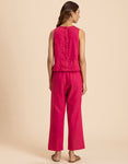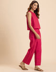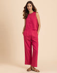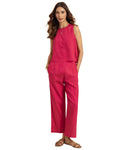 FEATURES: Sleeveless Top, Wooden Button On Back, Semi Elastic Waist With Concealed Zipper, Include Pockets In Trouser, Lightweight, Regular Fit.