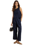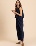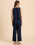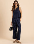 FEATURES: Sleeveless Top, Wooden Button On Back, Semi Elastic Waist With Concealed Zipper, Include Pockets In Trouser, Lightweight, Regular Fit.