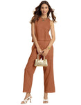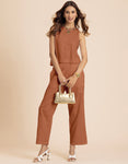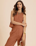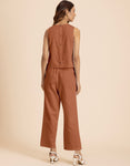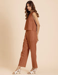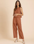 FEATURES: Sleeveless Top, Wooden Button On Back, Semi Elastic Waist With Concealed Zipper, Include Pockets In Trouser, Lightweight, Regular Fit.