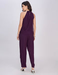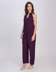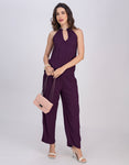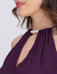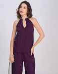 → Sleeveless halter neck top with beaded neckline and cutout detail, adding a touch of elegance.