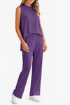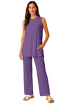 Stylish & Comfortable Design: Includes a high-low sleeveless tank top with side slit hem and wide leg high-waisted pants with a pocket. A flattering silhouette that suits all body types