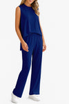 Stylish & Comfortable Design: Includes a high-low sleeveless tank top with side slit hem and wide leg high-waisted pants with a pocket. A flattering silhouette that suits all body types