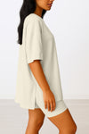 Relaxed Oversized Fit: Drop-shoulder, oversized short sleeve t-shirt with a high-low hem and side slit for an effortlessly cool and laid-back vibe.