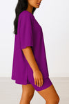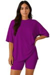 Relaxed Oversized Fit: Drop-shoulder, oversized short sleeve t-shirt with a high-low hem and side slit for an effortlessly cool and laid-back vibe.
