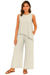 Modern Asymmetrical Design: Features a sleeveless tank top with an elegant asymmetrical hem that adds a chic and flowy silhouette - easy to dress up or down.