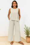 Functional Summer Pants: High-waisted wide leg pants with an elastic waistband for a flattering fit and two side pockets to keep your essentials close.