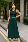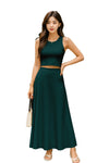 Elegant 2 Piece Set: Includes a sleeveless crop top and a high-rise maxi skirt - a stylish pairing for brunches, vacations, or casual summer events.