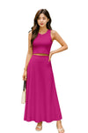 Elegant 2 Piece Set: Includes a sleeveless crop top and a high-rise maxi skirt - a stylish pairing for brunches, vacations, or casual summer events.
