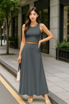 Elegant 2 Piece Set: Includes a sleeveless crop top and a high-rise maxi skirt - a stylish pairing for brunches, vacations, or casual summer events.
