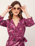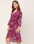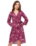 Features: V Neck, Wrap Style Dress, Long Sleeves, Zip, Regular Fit, Knee Length, Lightweight, All Over Printed Pattern.