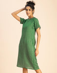 Features: Short Sleeves, Round Neck, Knee Length, Straight Style Dress, Regular Fit, Lightweight, All Over Printed Pattern.
