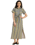 Features: Short Sleeves, Maxi Length, Shirt Collar Neckline, Plastic Button, Includes 2 Front Pocket, Shirt Style, Regular Fit Dress With Belt , Lightweight, All Over Printed Pattern.