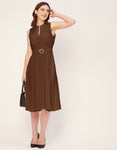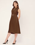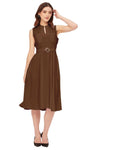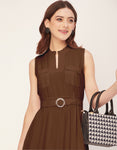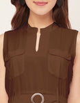Features: Mandarin Collar, Includes 2 Pockets, Sleeveless, Zip Closure, Knee Length, Regular Fit Dress With Belt.