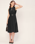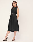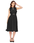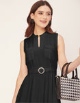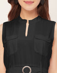 Features: Mandarin Collar, Includes 2 Pockets, Sleeveless, Zip Closure, Knee Length, Regular Fit Dress With Belt.