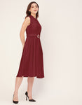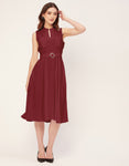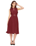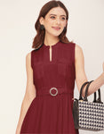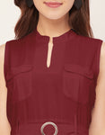 Features: Mandarin Collar, Includes 2 Pockets, Sleeveless, Zip Closure, Knee Length, Regular Fit Dress With Belt.