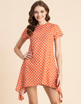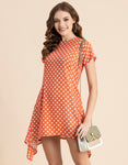 Tags: Asymmetric Dress For Women, Polka Dot Print Dress, A-Line Dress, Round Neck Casual Dress, Mini Dresses For Women 2023