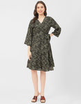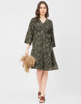 Tags: Printed Ruffle Dress For Women, Wrap Dress With Sleeves, Printed Short Dress For Women, V-Neck Dress, Printed Summer Dress,