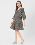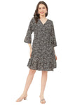 Tags: Printed Ruffle Dress For Women, Wrap Dress With Sleeves, Printed Short Dress For Women, V-Neck Dress, Printed Summer Dress,