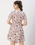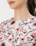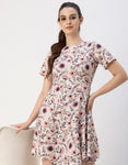 Features: Short Sleeve, Round Neck, Asymmetric Hem, Midi Length, Lightweight And All Over Printed Pattern.