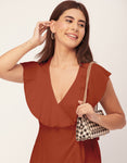 Features: Short Sleeves, Wrap Style, V Neck, Flared, Ruffle Hem, Long Length, Lightweight And Available In Solid Colors.