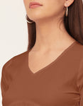 Features: Quarter Length Bell Sleeve, V Neck, Tired Style, Flared, Lightweight And Available In Solid Colors.