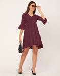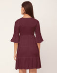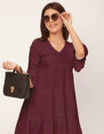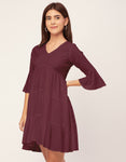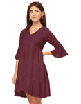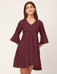 Tags: Tiered Dress For Women, V Neck Dresses, Solid Dress For Women, Midi Dress For Women, Casual Dress, Bell Sleeve Dress,