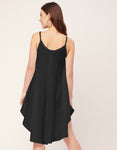Features: Round Neck, Knee Length, Lightweight, Sleeveless, Asymmetric Style Dress, Relaxed Fit, Perfect Beach Wear, Available In Solid Colors.