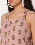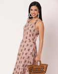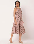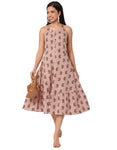 Features: Criss-cross back, sleeveless, tiered hem, knee length, lightweight and all over printed pattern
