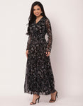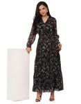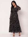 Features: Full sleeve, v-neck, flared hem, long length lightweight and all over printed pattern.