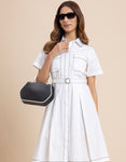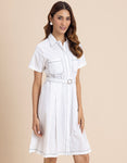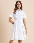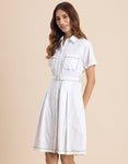FEATURES: Short Sleeves, Includes Two Pockets In Front, Classic Collar, With Buckle Belt, Short Length, Lightweight, Regular Fit, Perfect Celebrity Style Dress