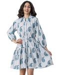 Tags: Printed Dress For Women, Full Sleeve Dress For Women, Band Collar Dress, Summer Outfit, Resort Wear Dress, Tiered Dress, Women Summer Dress.