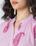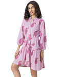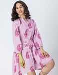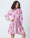 Features: Full Sleeve, Band Collar, Plastic Button On Front, Drawstring, Regular Length, Lightweight, All Over Printed Pattern.
