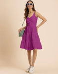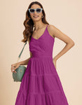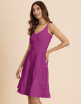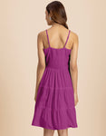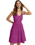 FEATURES: Sleeveless, 3 Tiered Dress, Smocked Back, Strap Adjuster, Knee Length Dress, Lightweight, Regular Fit