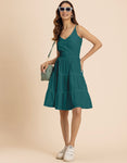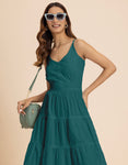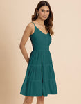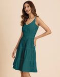 FEATURES: Sleeveless, 3 Tiered Dress, Smocked Back, Strap Adjuster, Knee Length Dress, Lightweight, Regular Fit